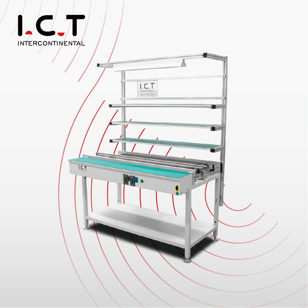 I.C.T ondan fazla konveyör türü sunarak her fabrikanın mükemmel çalışmasını sağlar. Standart bağlantı konveyörleri panoları kolayca aktarır. Muayene istasyonları parlak ışıklar ekler. Teleskopik ve reddetme üniteleri özel düzenlere uygundur. Gelişmiş SMT PCB Sızdırmazlık konveyör, ultra temiz ortamlar için manuel kapak, otomatik kaldırma kapağı, tek veya çift şeritli versiyonun yanı sıra isteğe bağlı hava duşu veya iyonlaştırıcıyla birlikte gelir. Ağır hizmet zincirli ve tamponlu modeller de mevcuttur. Her konveyör PCB Montaj Hattı, temizlik gereksinimlerinize tam olarak uyacak şekilde uzunluk, yükseklik, kapak tipi ve akıllı işlevler açısından tamamen özelleştirilebilir.
