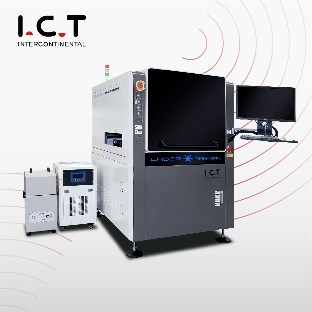Bu ünite, PCB üzerinde metin, barkod, 2D kod ve grafik işaretlemek için kullanılır, I.C.T lazer markalama makinesi esas olarak PCB endüstrisinde kullanılır. SMT montaj hattını sorunsuz bir şekilde bağlayabilir ve MES sisteminin çevrimiçi veri iletimini ve bilgi dönüşünü destekleyebilir.