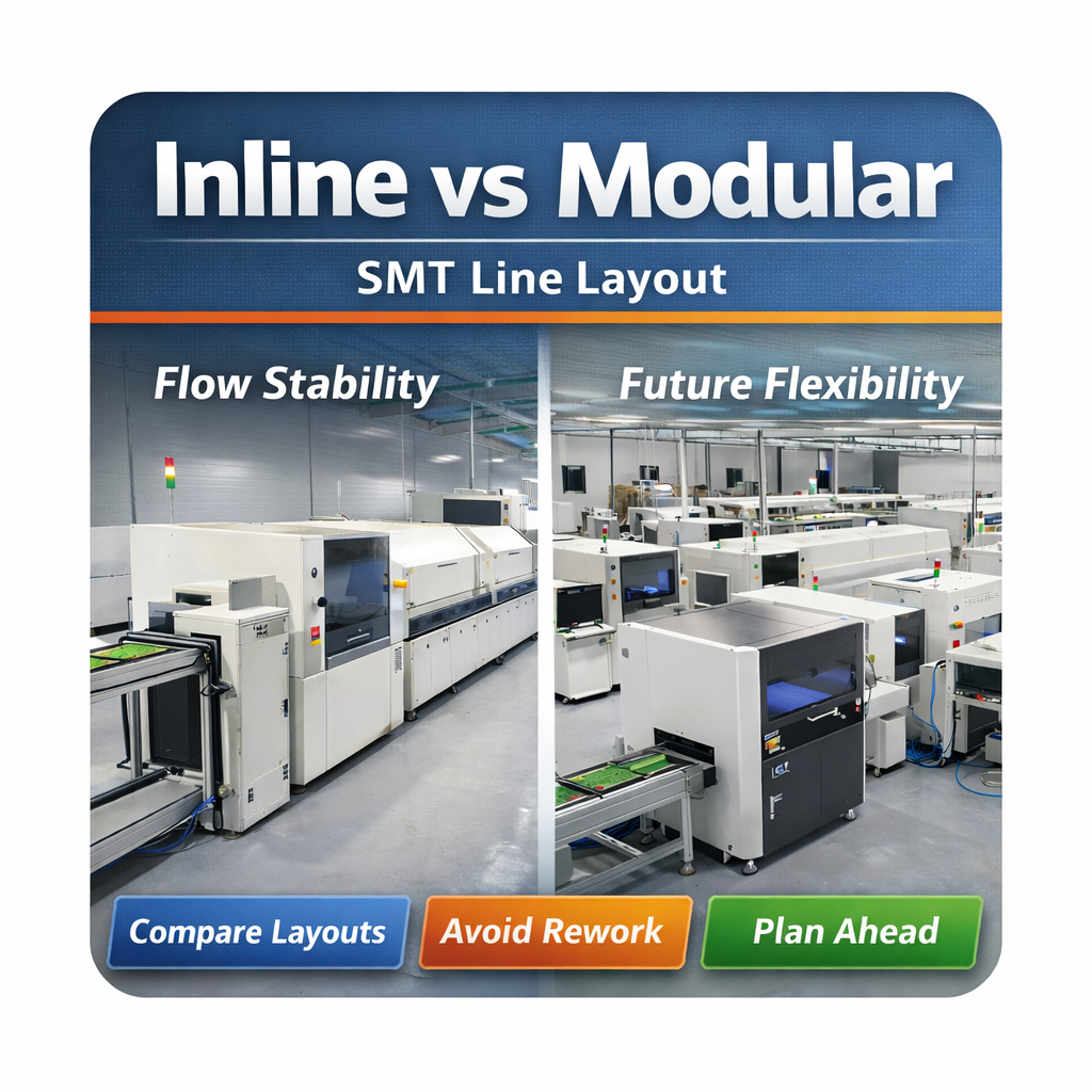 Bu nedenle arasında seçim yapmak, satır içi ve modüler SMT hat düzeni taban alanı verimliliği meselesi değildir. Malzeme akışı istikrarını, değişim esnekliğini, sistem dayanıklılığını ve gelecekteki genişlemenin gerçek maliyetini doğrudan etkileyen uzun vadeli bir üretim stratejisidir.